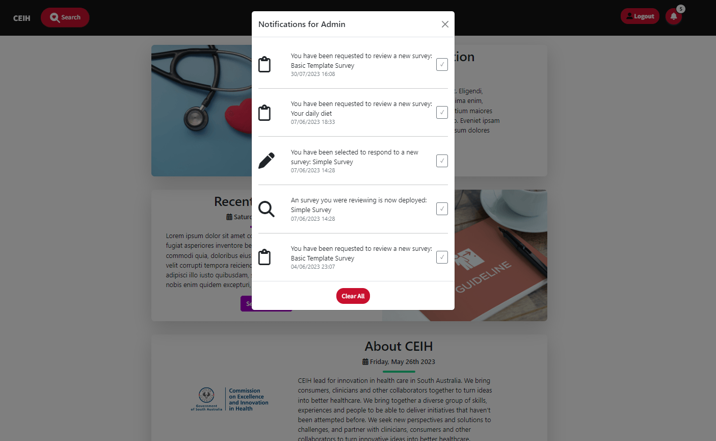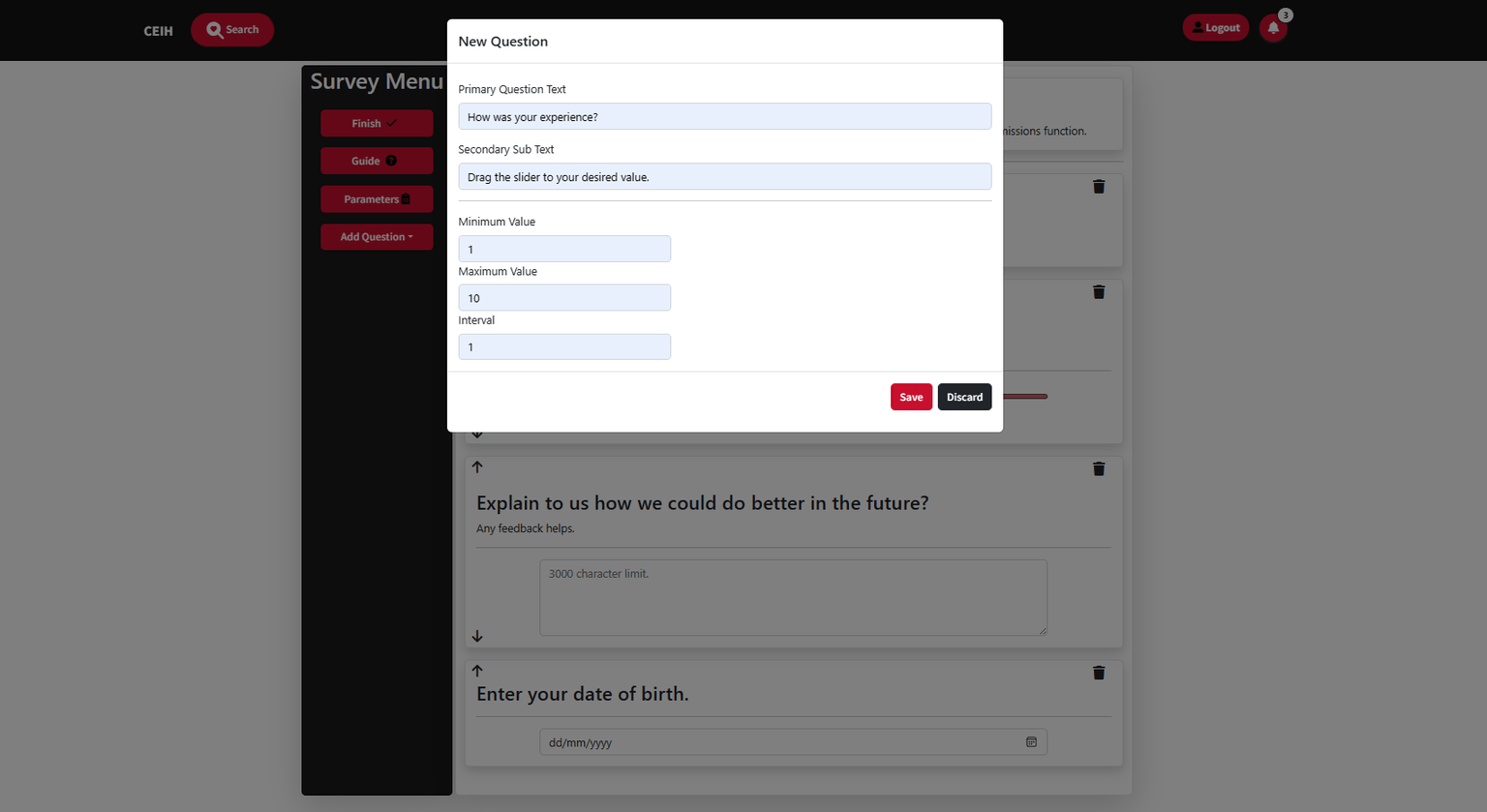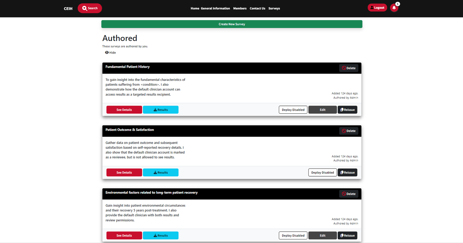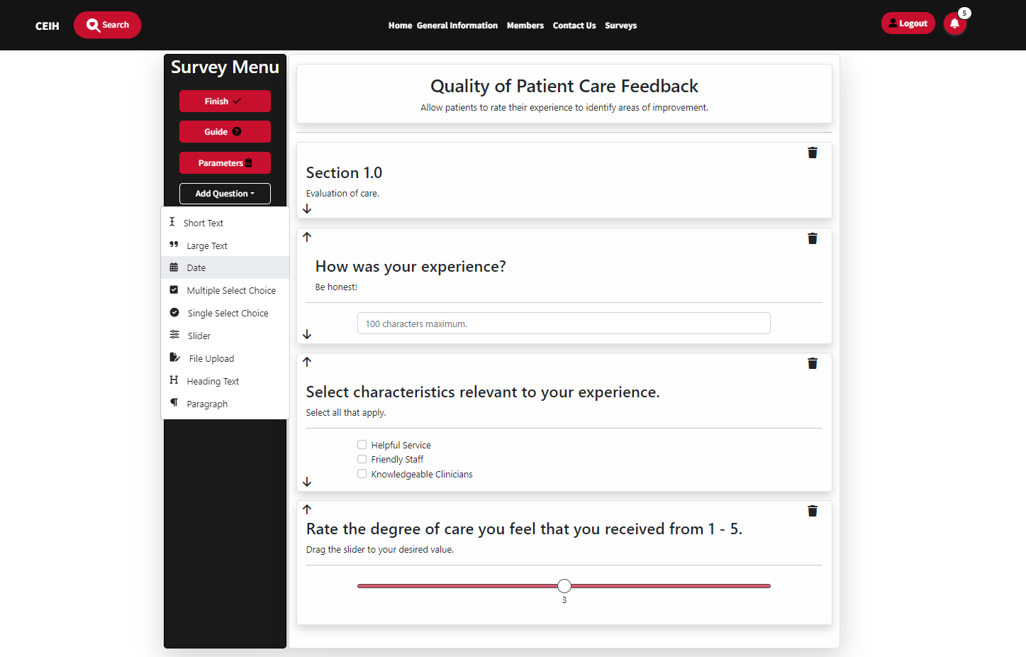 A survey system built for the heart failure subcommittee of the Commission on Excellence and Innovation in Health.